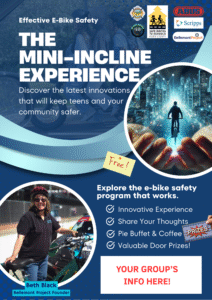 We now have two options for you to sample the Incline Program experience. The Mini-Incline Experience (onsite) is for Orange and San Diego counties. The Virtual Mini-Incline Experience is available to more-distant participants. Rest-assured, whichever version you experience, you’ll discover a powerful way to help your city better-manage e-bike safety. Contact us for more information.
